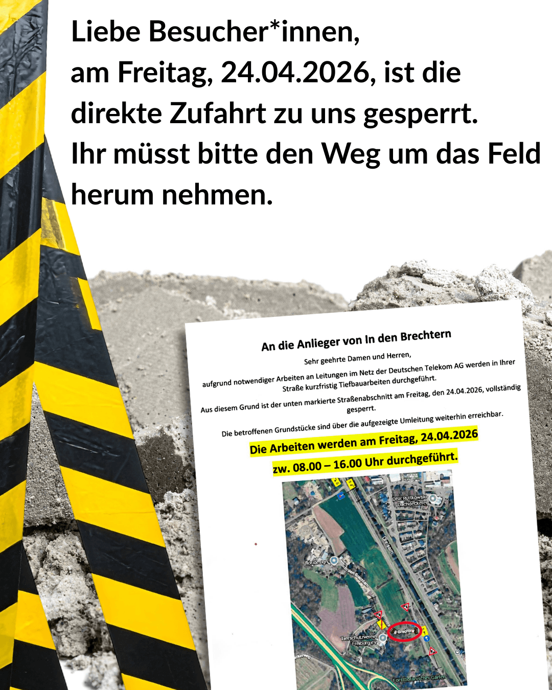 Freitag, 24.04.2026 ist die Straße zum Tierheim gesperrt