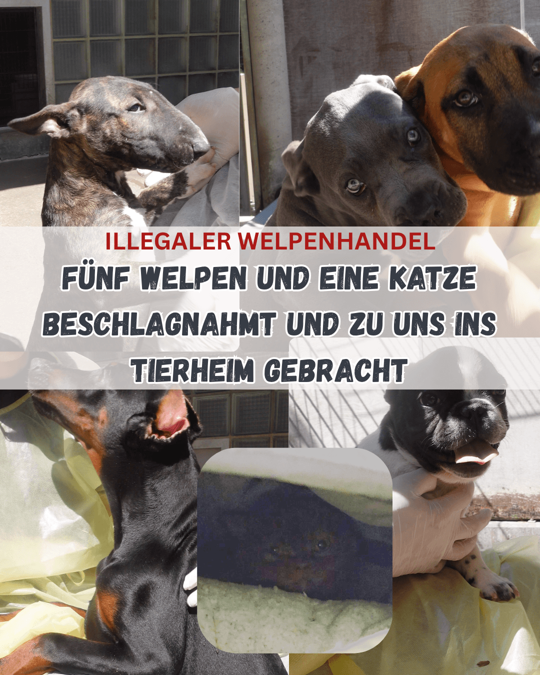 wir ihr sicher mitbekommen habt, wurden am 08.04.2026 fünf Welpen und eine Katze aus einem Auto in Freiburg beschlagnahmt und zu uns ins Tierheim gebracht. Hintergrund: Illegaler Welpenhandel.